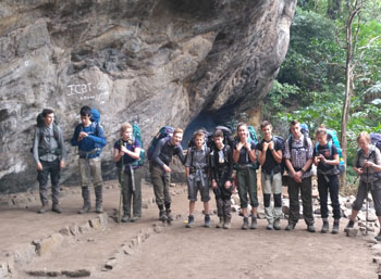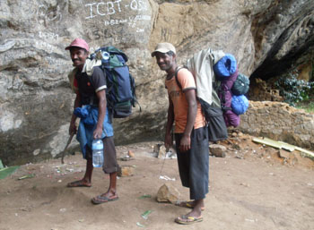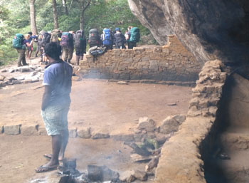 Sri Lanka Trekking Ash Cave Camp Its a rock shelter lies just at the bottom of the highest peak of Knuckles Range on a canyon. One of the hardest trail in Knuckles Range but you could do it wth courage. We have to bring all the camping gears and foods with poters to organize camping here and have to get a special permision from forest department of Sri Lanka.